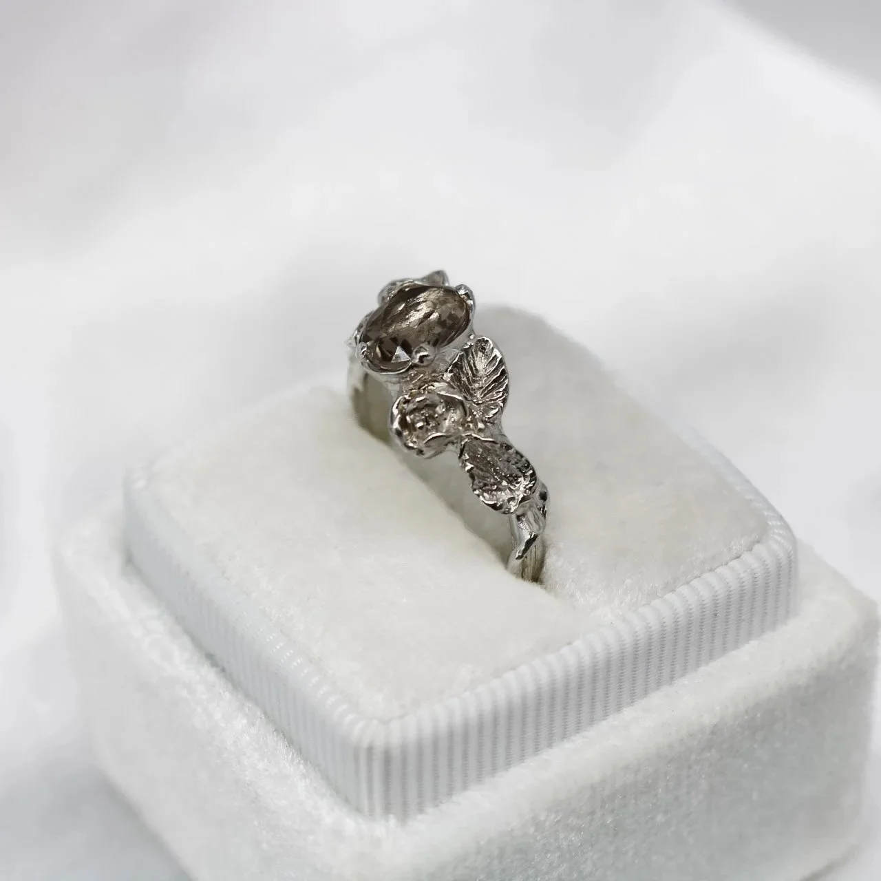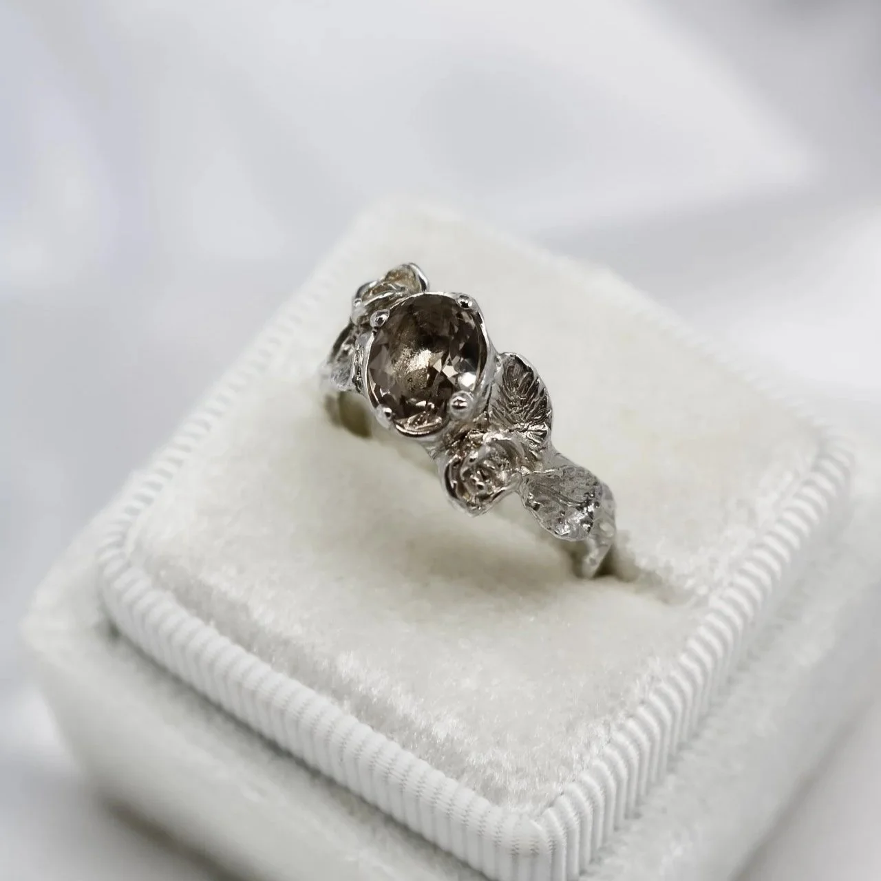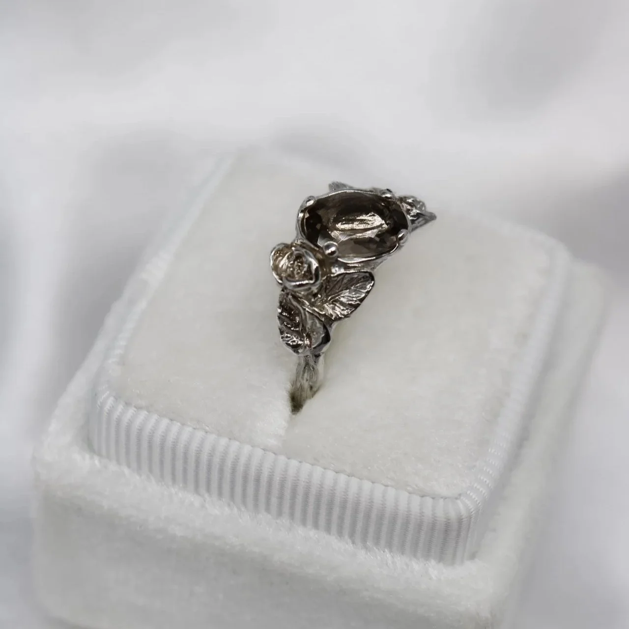 ‘Secret Garden’ Rose and Leaf Ice Blue Moissanite £260.00 Only 1 available ‘Secret Garden’ Rose and Leaf Ice Blue Moissanite £260.00 Only 1 available ‘Secret Garden’ Rose and Leaf Cairngorm Quartz £340.00 Only 1 available