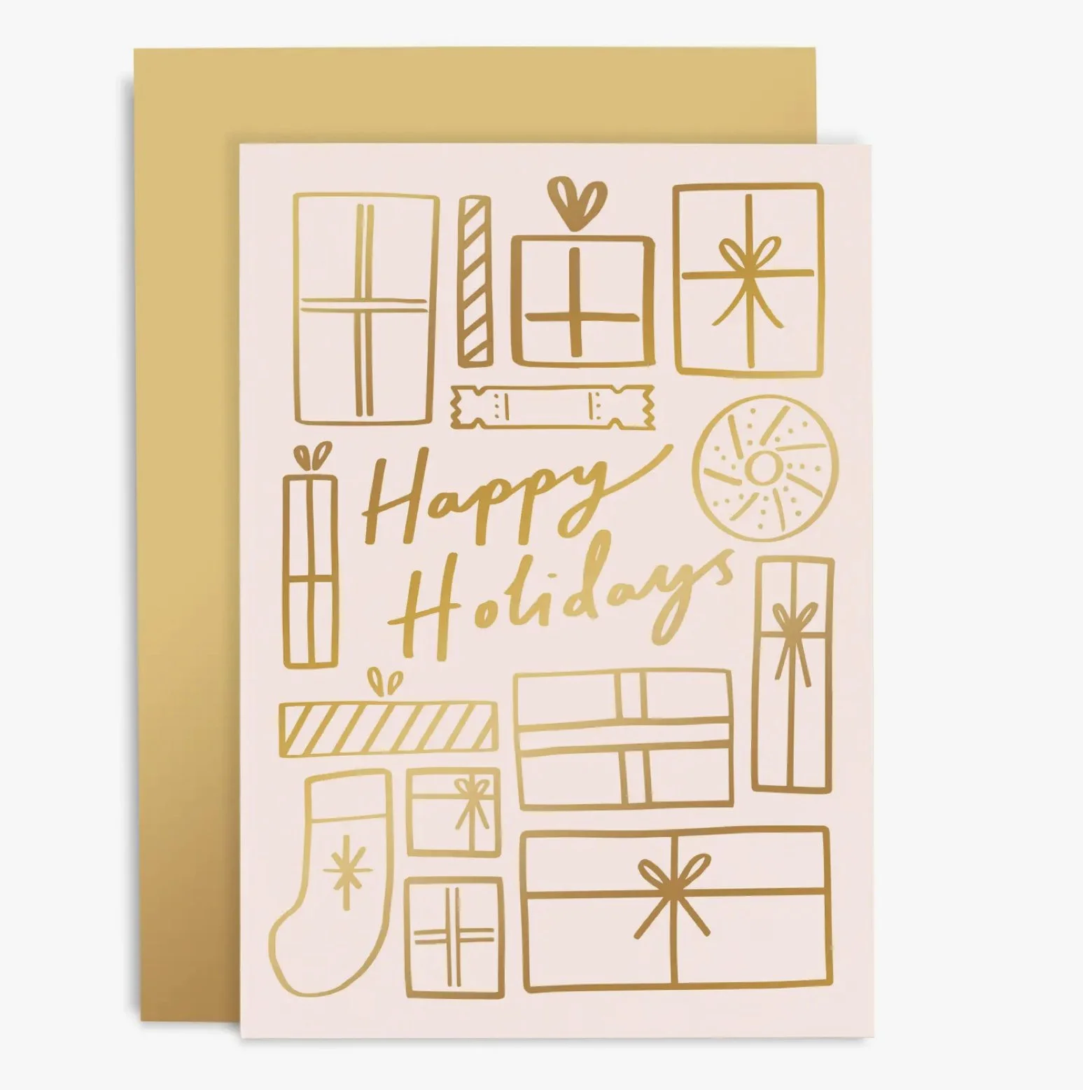 MADE FROM: Made from 240gsm white card and printed using high quality inks. Pressed with gold foil.